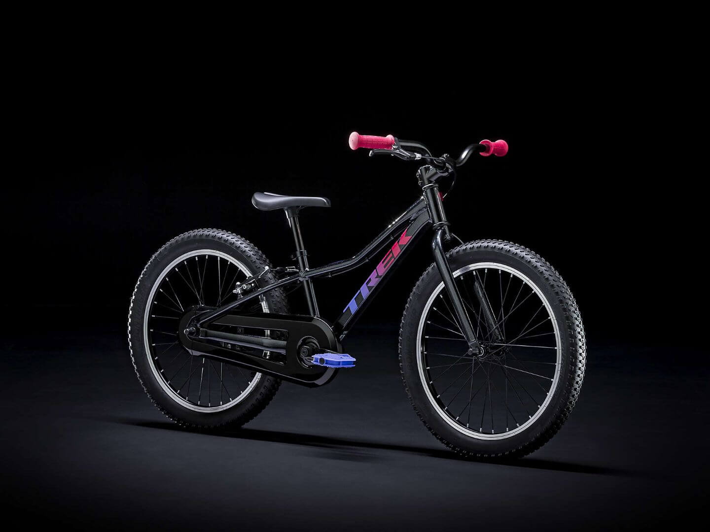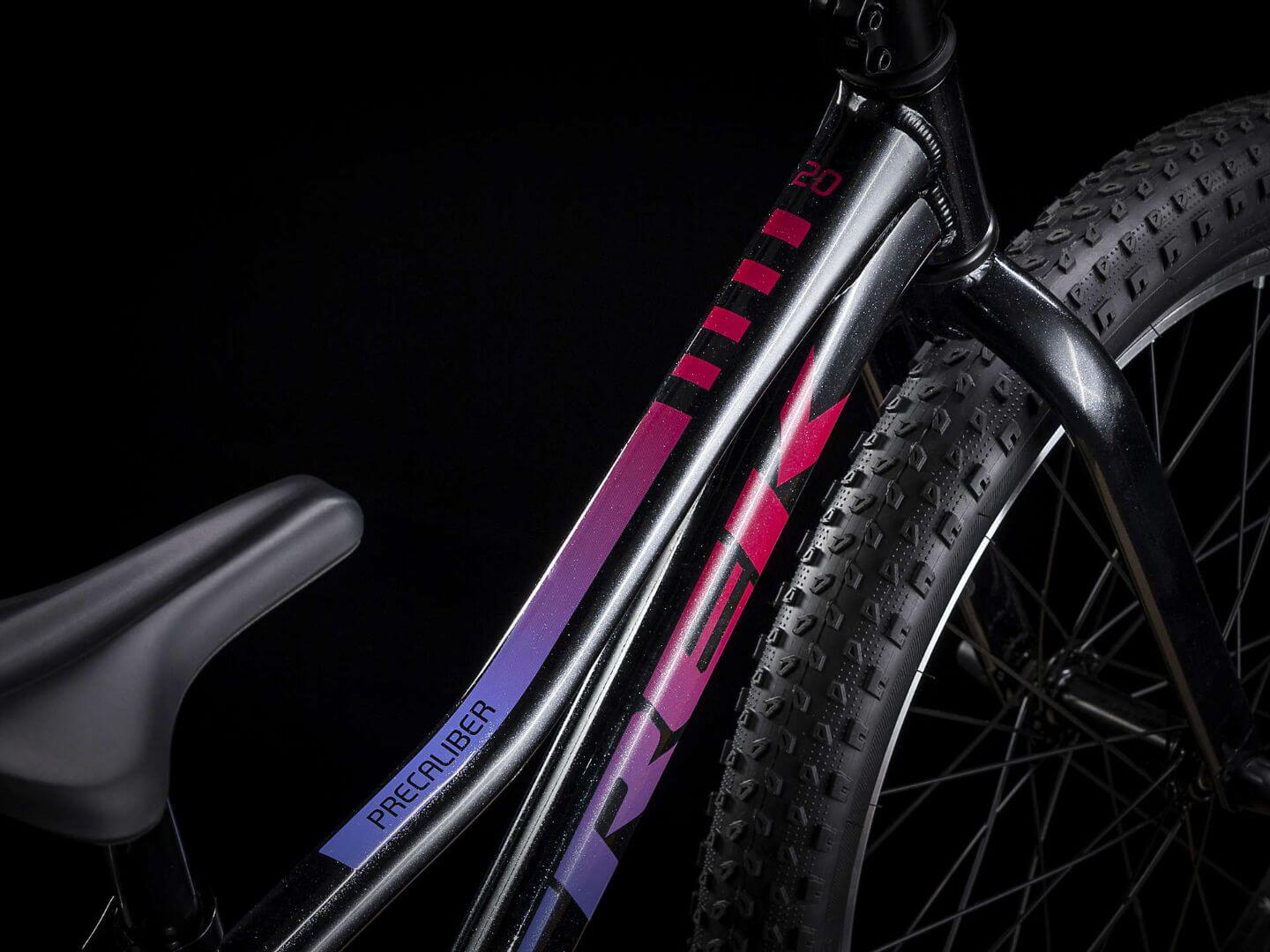 אופניים לילדות Trek Precaliber 20 עם מעצורי יד, שלדת אלומיניום קלה, גלגלים 20 אינצ' וצמיגים איכותיים. מושלמות לרכיבות בטוחות ומהנות! מתאימות לגילאי 6-8.