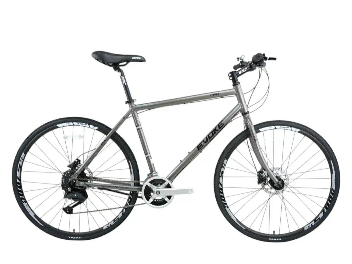 אופני עיר Evoke FF 2 מציעים שלדת אלומיניום קלה, מערכת הילוכים Shimano CUES, וצמיגים Kenda 700x35C. אידיאליים לנסיעות יומיות בעיר, עם מעצורים הידראוליים לבטיחות מרבית.