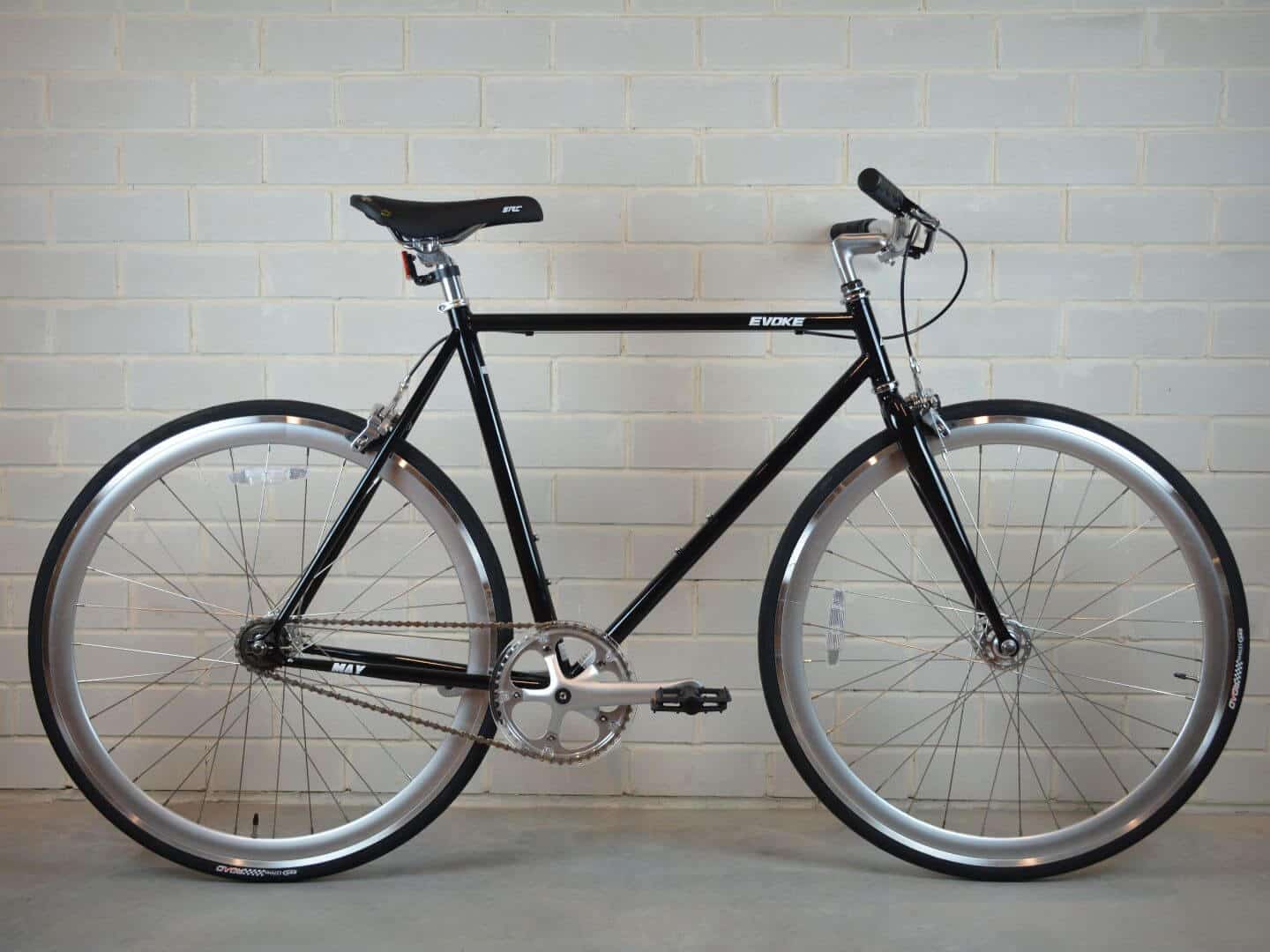 אופני Evoke May – אופני FIXIE עם שלדת כרומולי, גלגלי אלומיניום 700 וצמיגי Kenda Kwick Roller. מושלמים לנסיעות עירוניות, קלים ועמידים. משקל 10.99 ק"ג.