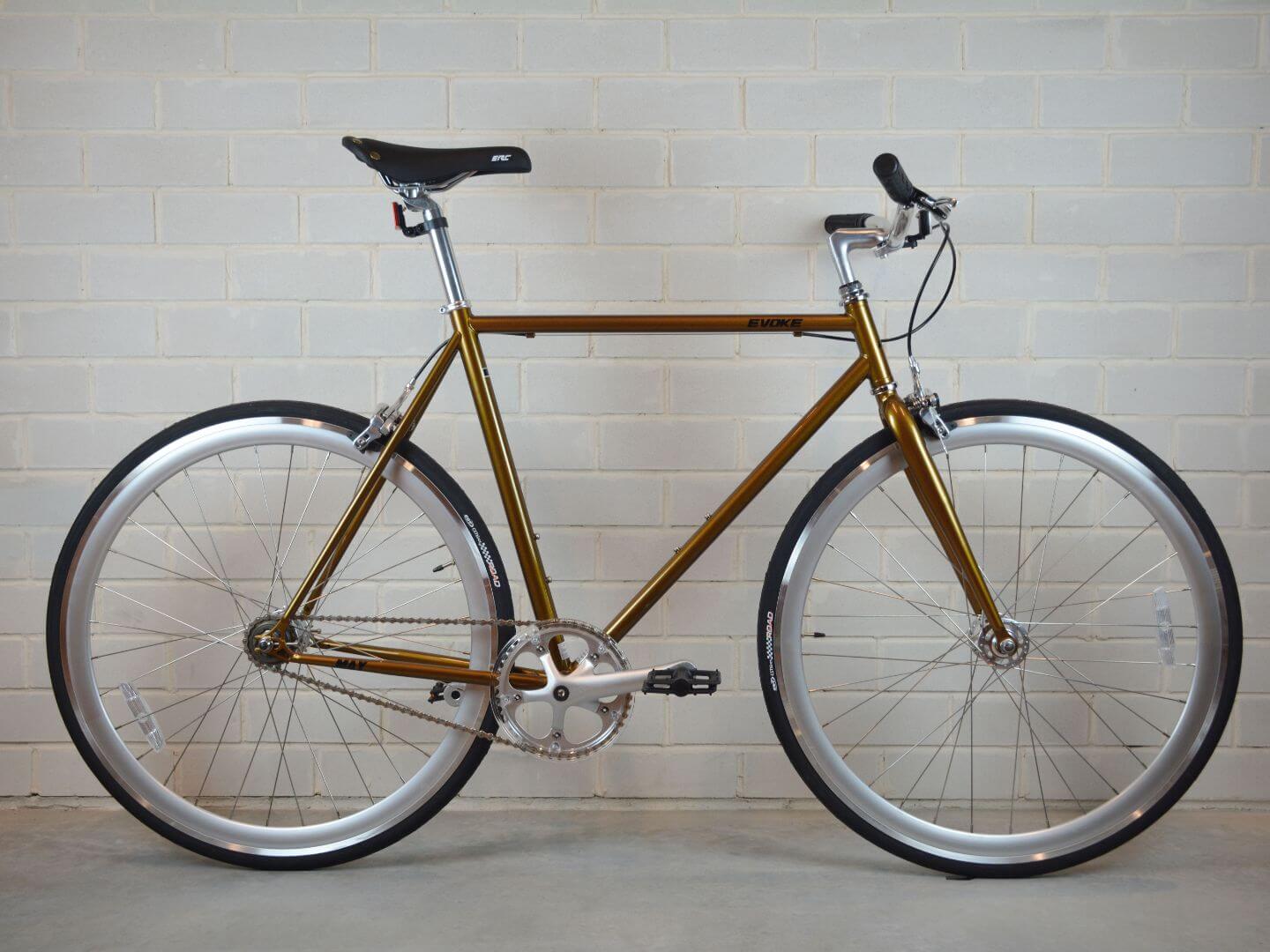 אופני Evoke May – אופני FIXIE עם שלדת כרומולי, גלגלי אלומיניום 700 וצמיגי Kenda Kwick Roller. מושלמים לנסיעות עירוניות, קלים ונוחים. משקל 10.99 ק"ג.