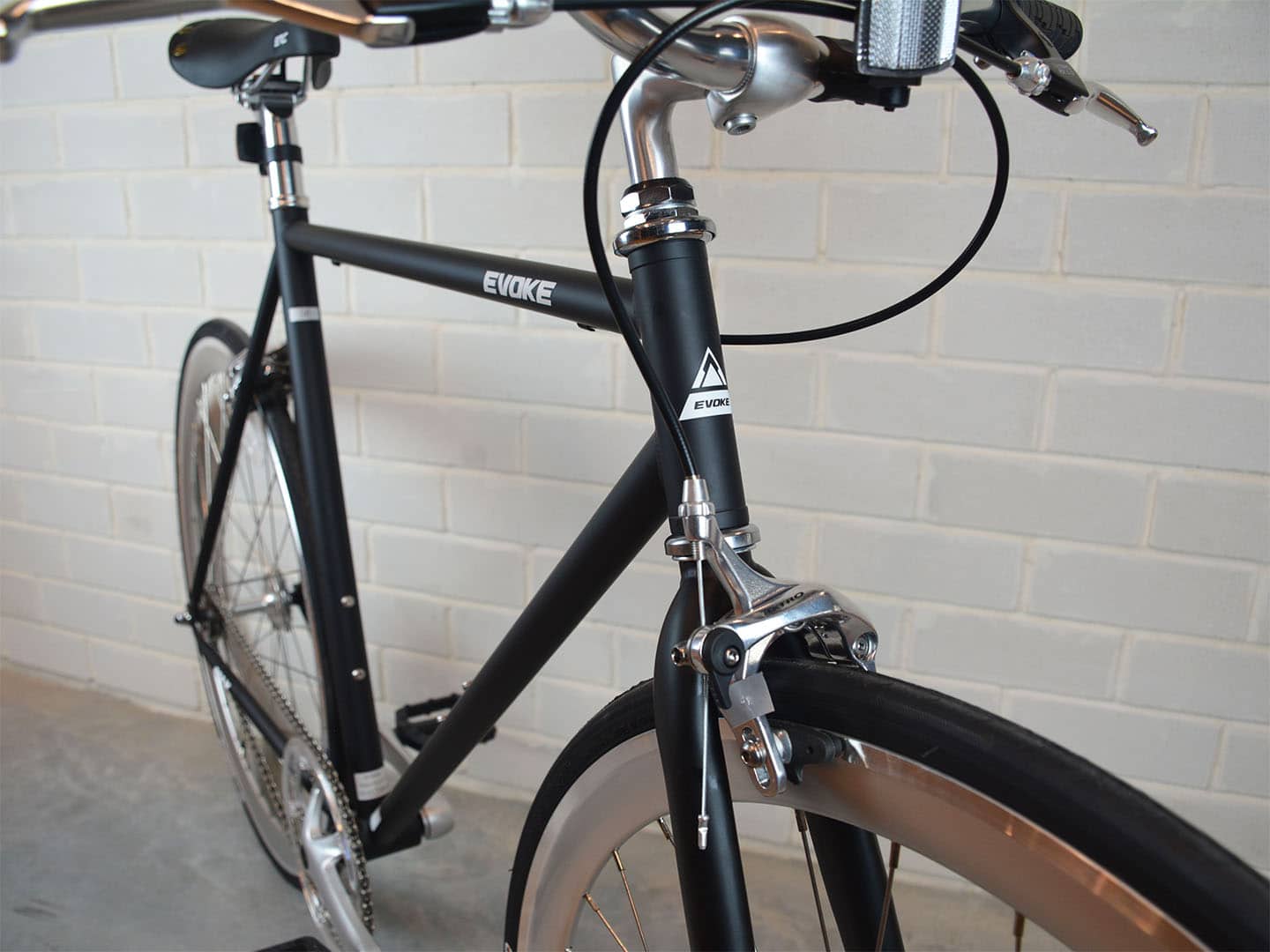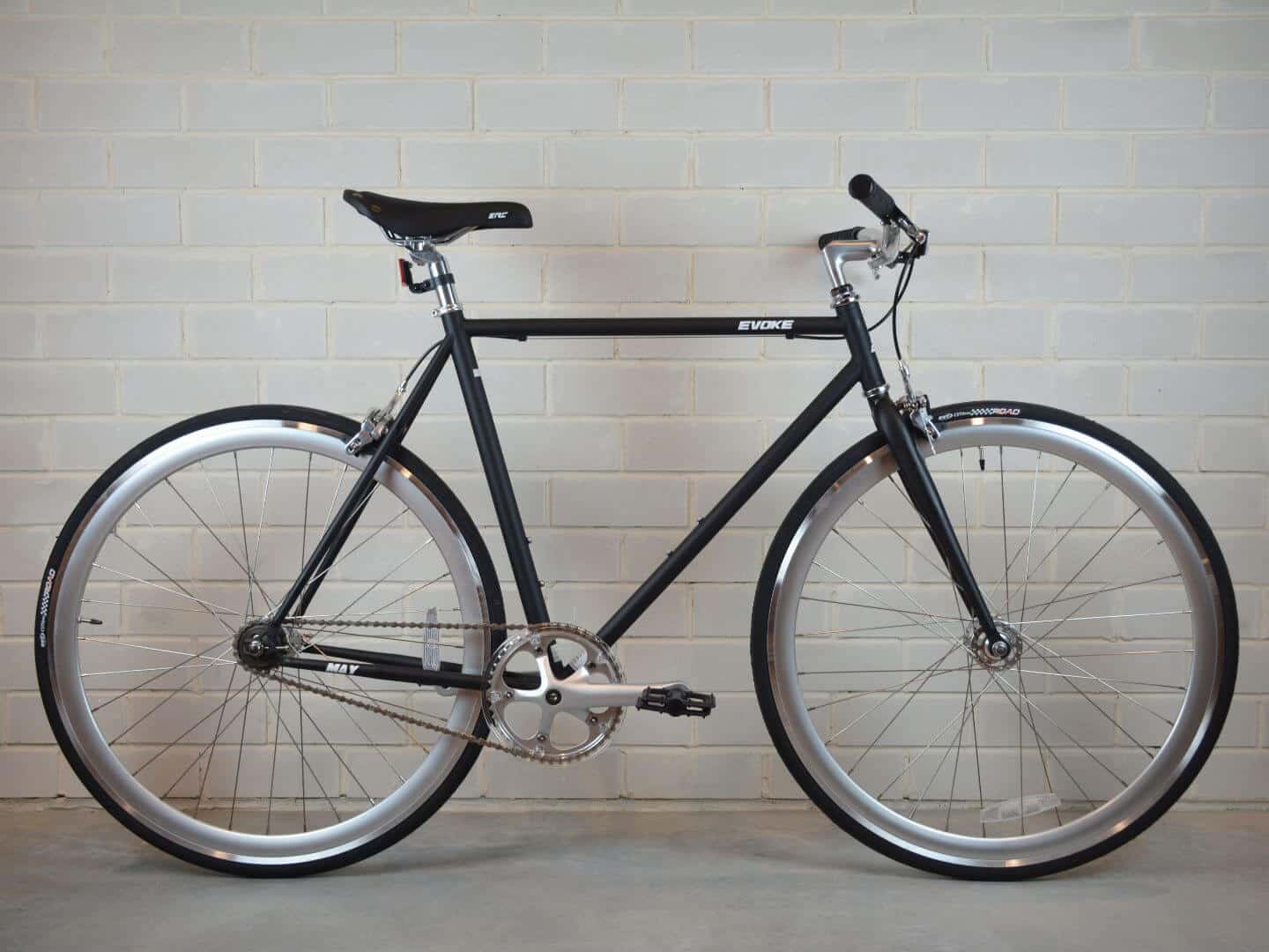 אופני Evoke May – אופני FIXIE עם שלדת כרומולי, גלגלי אלומיניום 700 וצמיגי Kenda Kwick Roller. מושלמים לנסיעות עירוניות, קלים ונוחים. משקל 10.99 ק"ג.