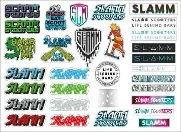דף מדבקות SLAMM SL565 – מדבקות ויניל איכותיות להדבקה על קסדות, קורקינטים ועוד. גליון A3 עם 32 מדבקות חתוכות מראש. קל ונוח לשימוש! שדרגו את הסגנון שלכם!
