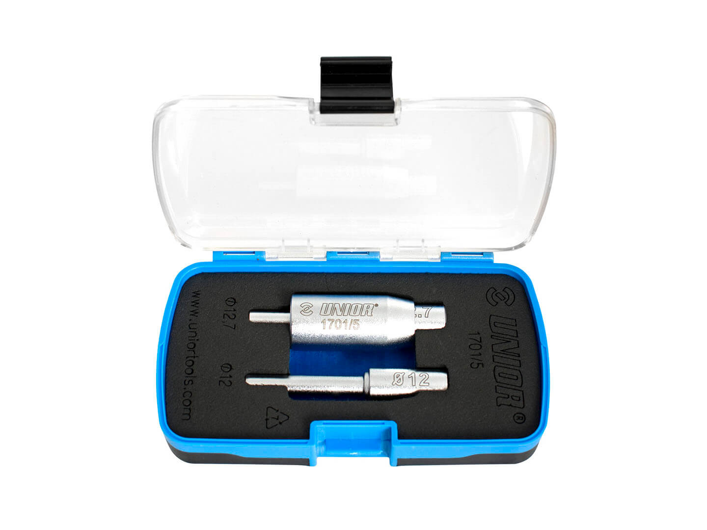 חולץ בושינג לבולם אחורי Unior דגם 1701/5 – כלי מקצועי להסרת בושינגים בקוטר 12 מ"מ ו-12.7 מ"מ. עשוי פלסטיק מוקשח, מגן על האטמים והצינורות. אידיאלי למכונאים ולחובבים!