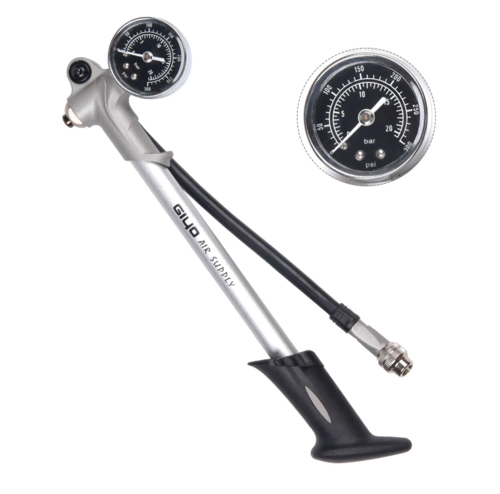 משאבת בולם GIYO GS-02D גמישה, מתאימה לכל סוגי הבולמים. לחץ מקסימלי 300 PSI, צינור מסתובב 360 מעלות, קלה במשקל 223 גרם. אידיאלית לניפוח בולמים!