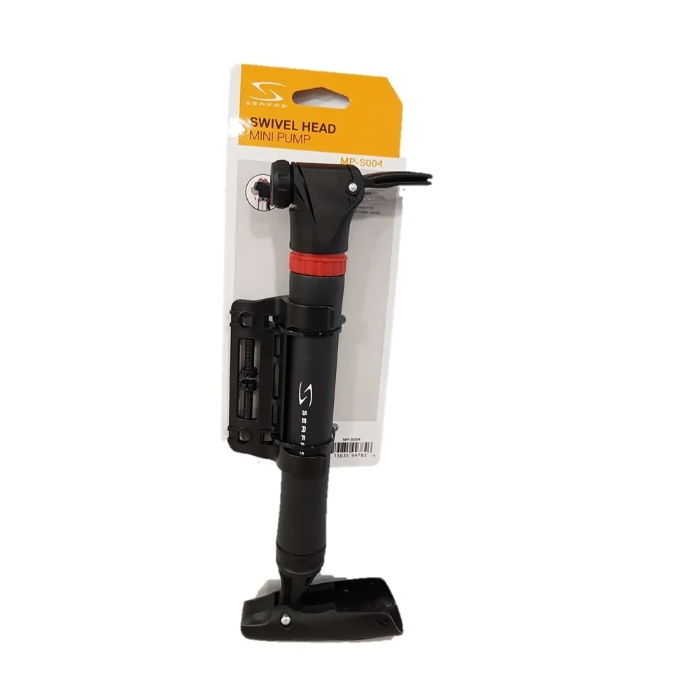 משאבה סרפס MP-004S – משאבה ידנית לאופני הרים, לחץ מקסימלי 60 PSI. עשויה פלסטיק קשיח, ידית מתכווננת, ראש מתחלף פרסטה/שרדר. אורך 25 ס"מ, תפס לשלדה כלול.