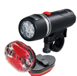 סט נצנץ ופנס – פנס קדמי עם 5 נורות LED חזקות ונצנץ אחורי לבטיחות באופניים. קל להתקנה, ללא כלים, מושלם לרכיבות ערב. שמור על בטיחותך!