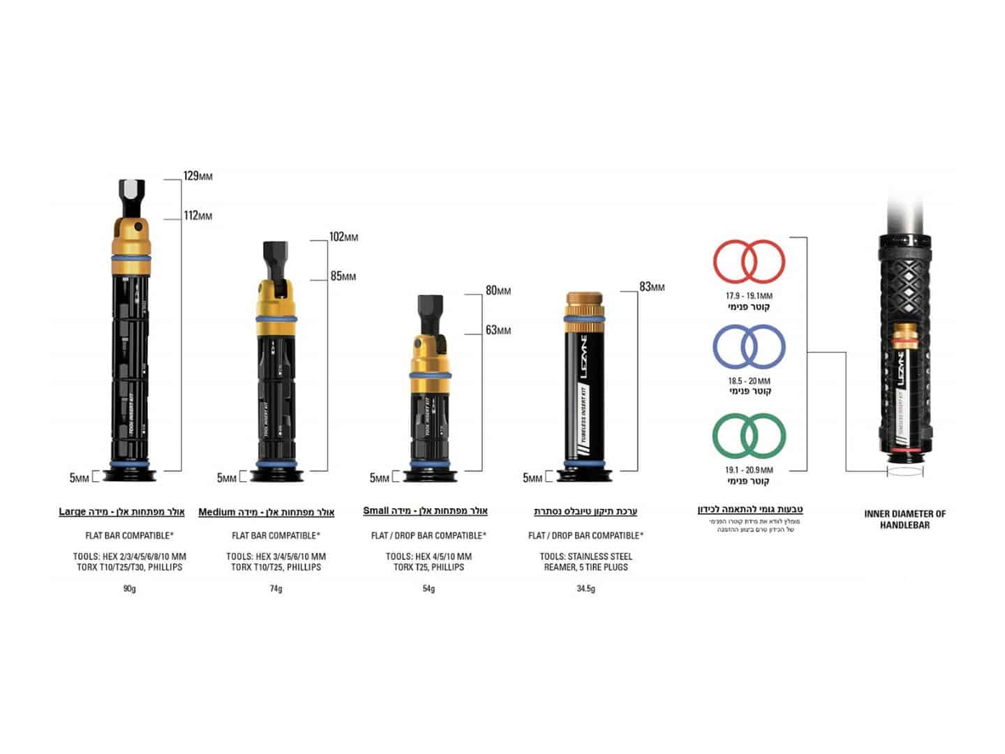 עם מגוון של 5 (גודל קטן), 8 (גודל בנוני) ו-11 (גודל גדול) מפתחות שימושיים ואיכות יצור ללא פשרות כמו תמיד בכלים של Lezyne.