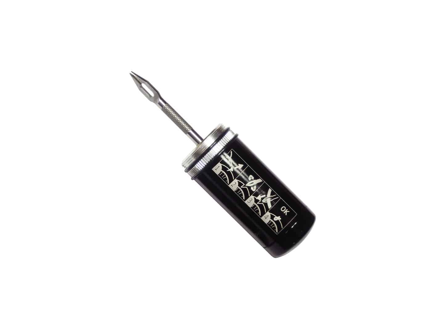 ערכת תיקון פנצ'ר טיובלס Lezyne Tubeless Kit – פתרון קומפקטי לתיקון צמיגים בשטח. כוללת מחט כפצירה ו-5 תולעים לתיקון מהיר. עשויה מאלומיניום קל וחזק, במשקל 48 גרם. אידיאלי לרוכבי אופניים!