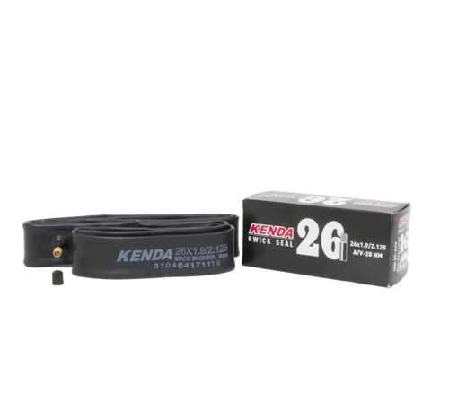 פנימית KENDA 26X2.125 AV לאופני הרים, עם טכנולוגיית KWICK SEAL לאטימת פנצרים. מתאימה לצמיגים 26*1.9-2.125. איכות גבוהה מבית KENDA, יצרנית צמיגים מובילה.
