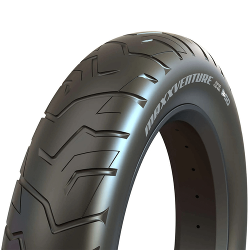 צמיג Maxxventure 20×4.0 MAXXIS, אידיאלי לאופניים חשמליים. עיצוב גומי חלק עם חריצים, מתאים לשימוש עירוני ולדרכים לא סלולות. משקל 1518 גרם, לחץ מקסימלי 30 PSI.