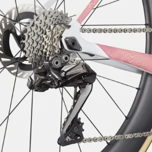 העיצוב המושך את העין של קבוצת EF Education-EasyPost כולל נגיעות ורוד זוהרות, מה שיבטיח לכם תשומת לב בכל מקום שתגיעו אליו. האופניים לא רק נראים טוב, אלא גם מבטיחים ביצועים ברמה עולמית.