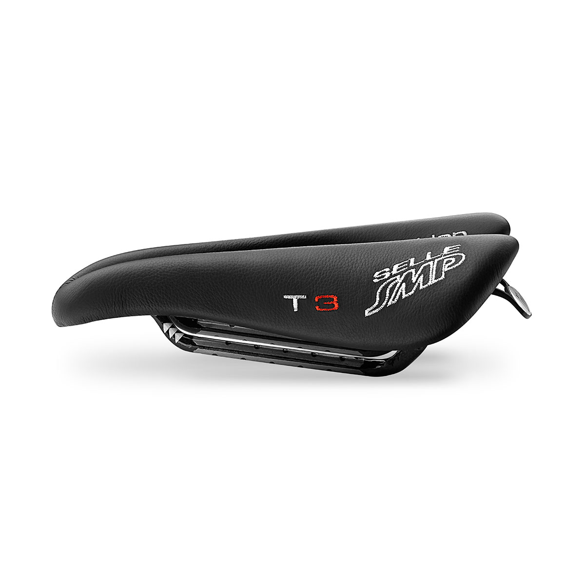 אוכף Selle SMP T3 לטריאתלון, בעיצוב ייחודי לרוכבים עם אגן צר. תעלה פתוחה לשיפור זרימת הדם, ריפוד אלסטומר מוקצף, ציפוי עור אמיתי. משקל 295 גרם.