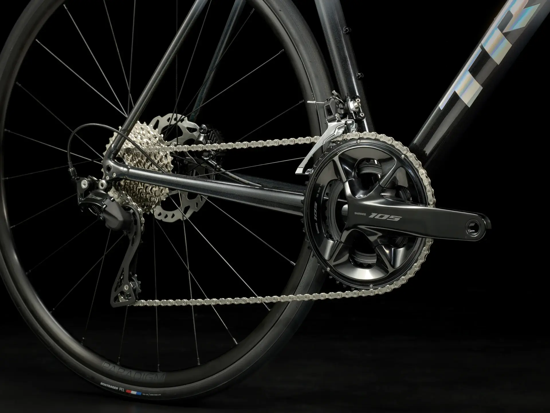 השלדה של Trek Emonda ALR מבוססת על טכנולוגיית Kammtail המפחיתה את התנגדות האוויר, מה שמאפשר לרוכבים להגיע למהירויות גבוהות יותר בקלות. העיצוב האיירודינמי לא רק משפר את הביצועים אלא גם מעניק לאופניים מראה מקצועי ומרשים.