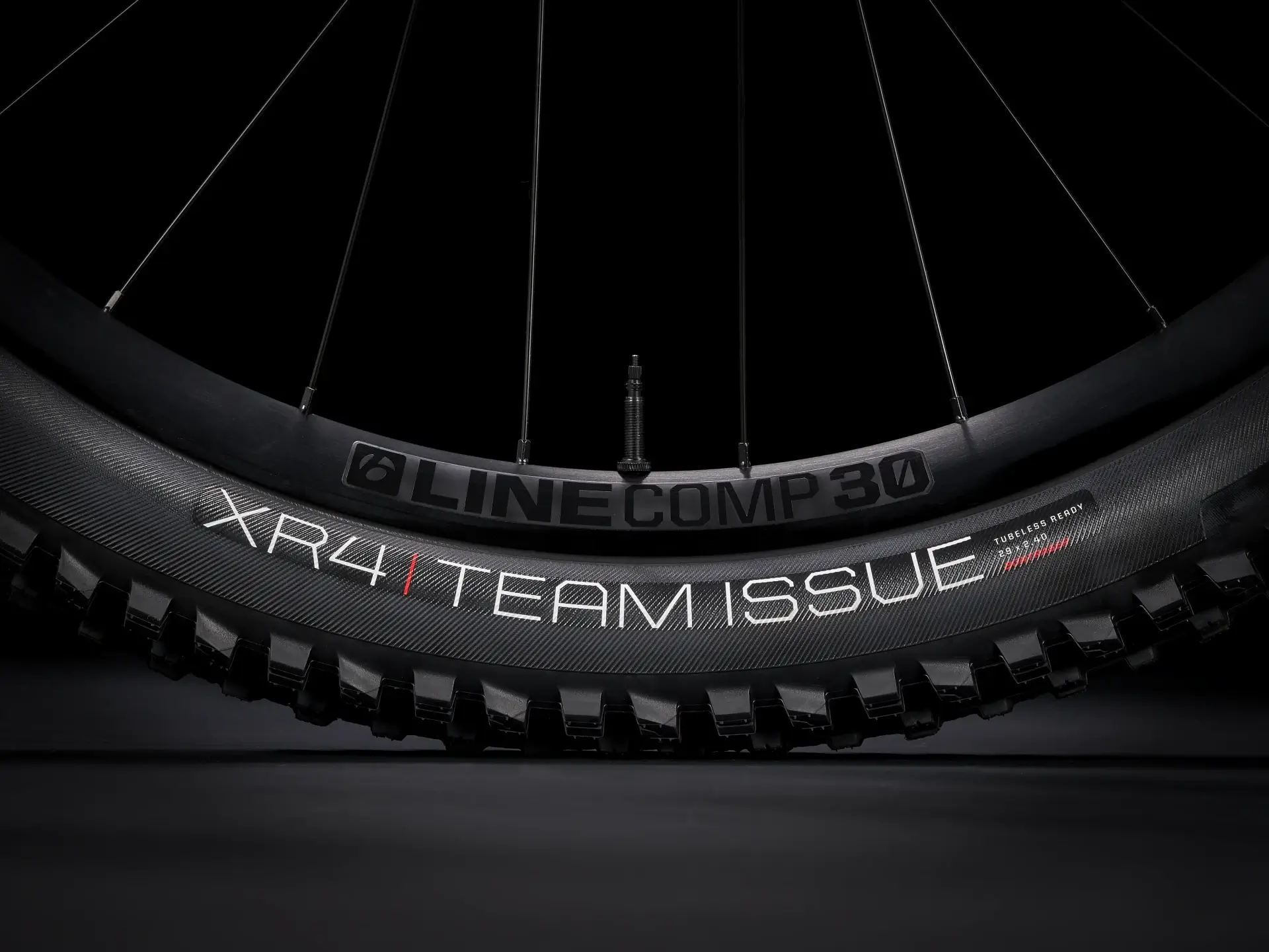 גלגלים Bontrager Line Comp 30, Tubeless Ready, עם צמיגים Bontrager XR4 Team Issue בגודל 29×2.40".